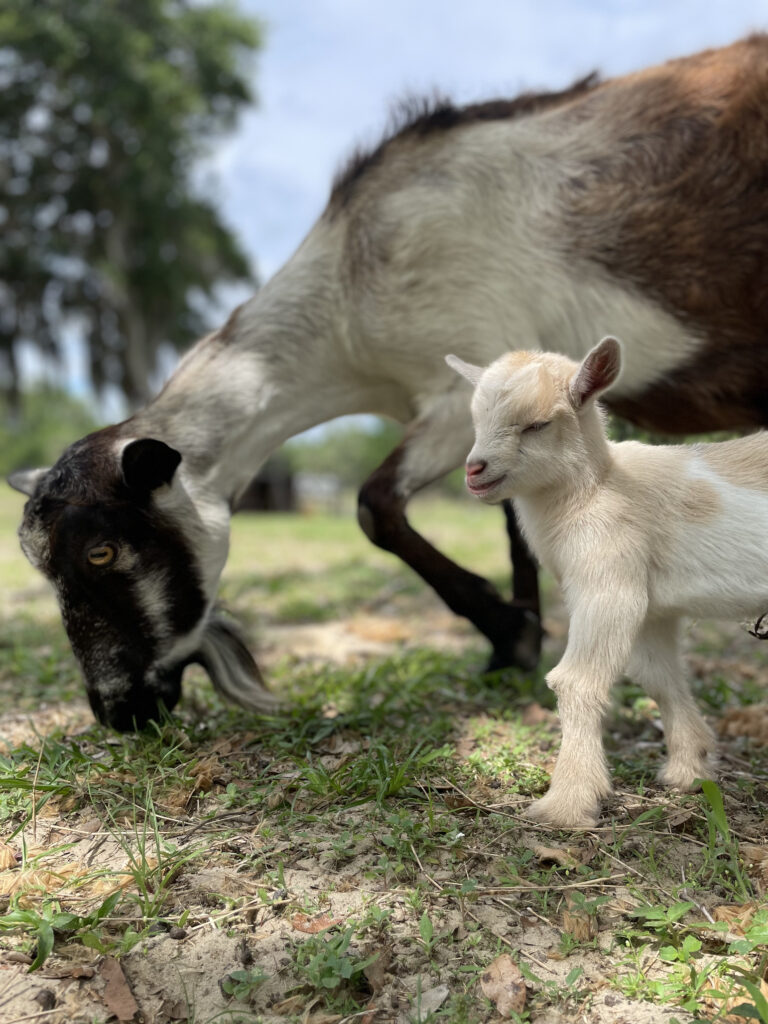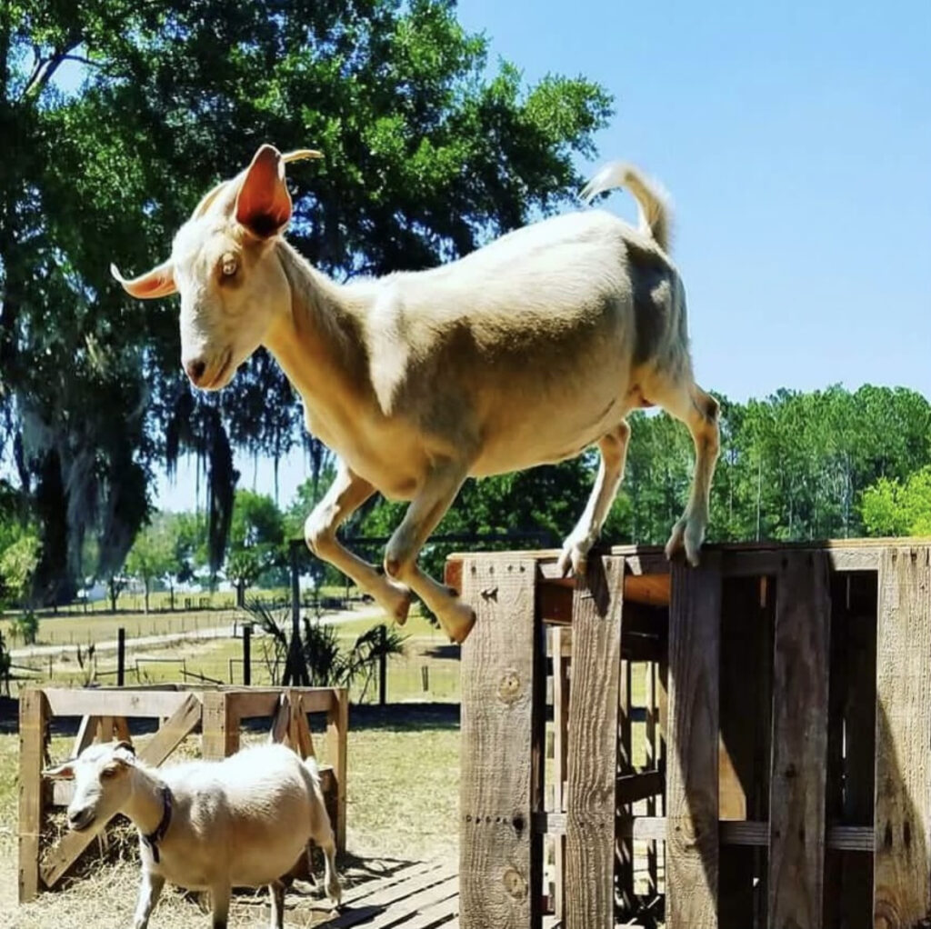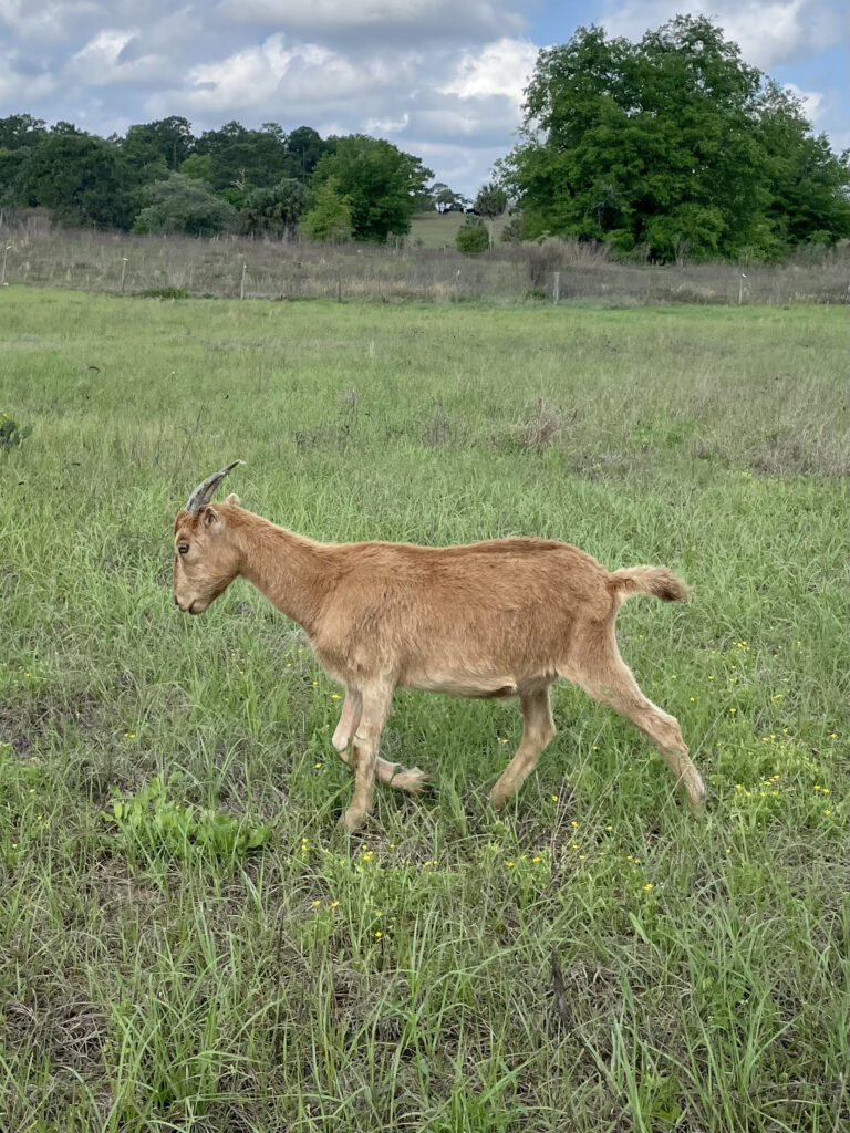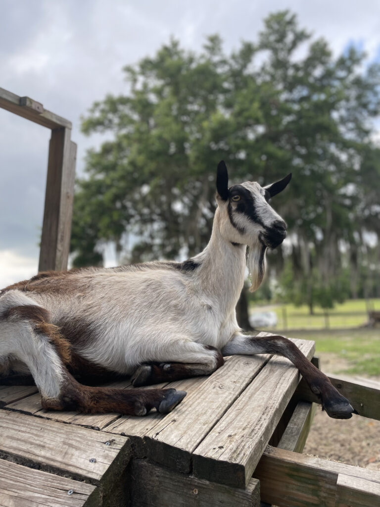Rejoice is a spunky and spirited alpine goat that lives on my farm. She was born in the spring of 2016 and has always been a playful and curious goat. Rejoice loves to explore her surroundings and play with her friends, but she also enjoys taking a break to relax in the sun. Her coat is a soft white with a black stripe running down her back. Rejoice is a hard worker and is always eager to help out with whatever needs doing on the farm. She is especially helpful in keeping the area around her pen tidy by eating all the grass and weeds that grow there. Rejoice is a great goat and I'm so happy to have her as part of my farm family!