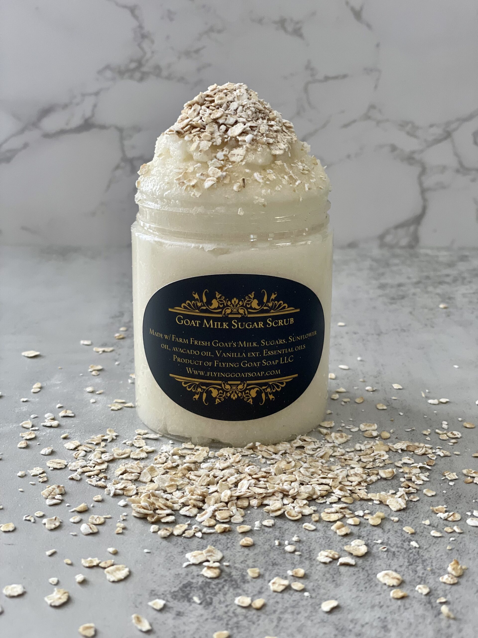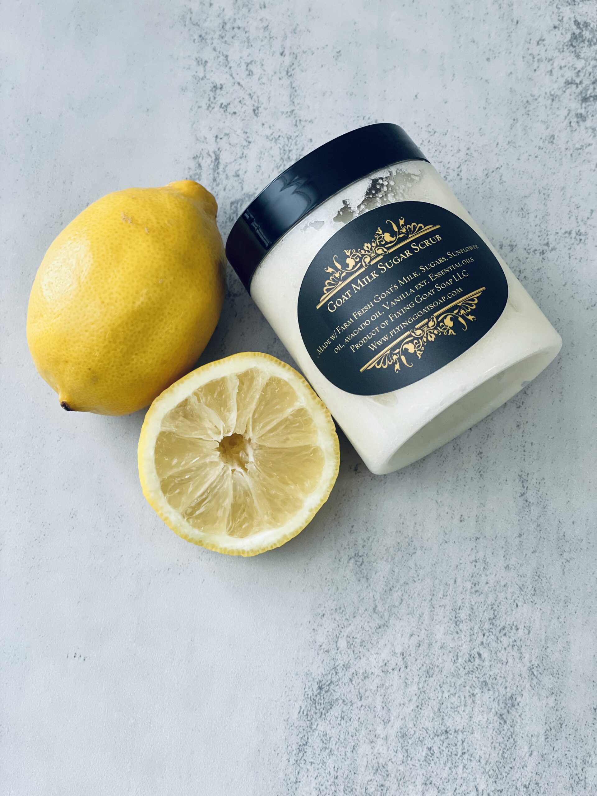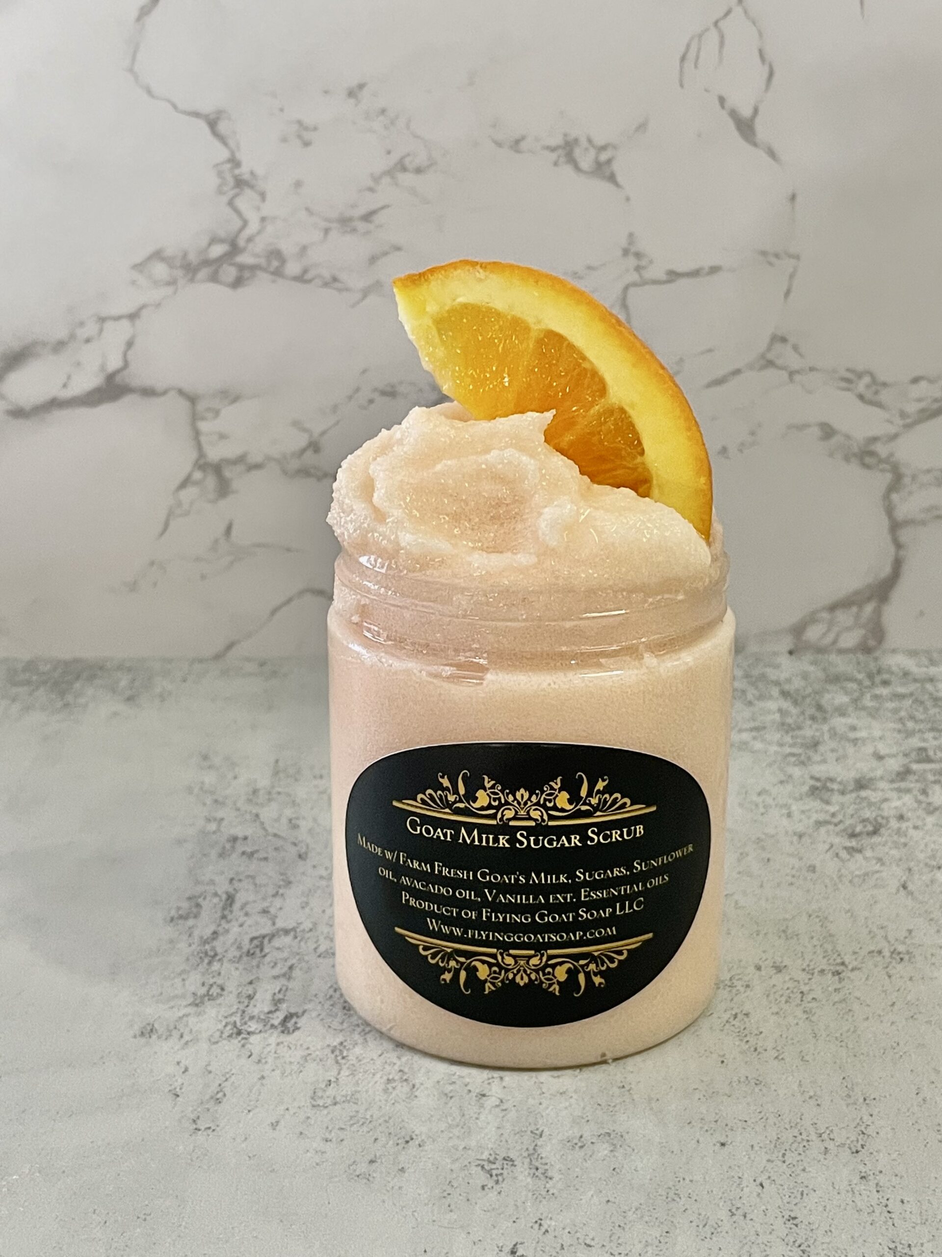 If so, our goat milk sugar scrubs are the perfect solution for you! Our scrubs are made with all organic ingredients, raw farm fresh goat milk, organic sugar, essential oils and avocado oil, sunflower oil, vitamin e, a & c. has alpha hydroxy botanical.25