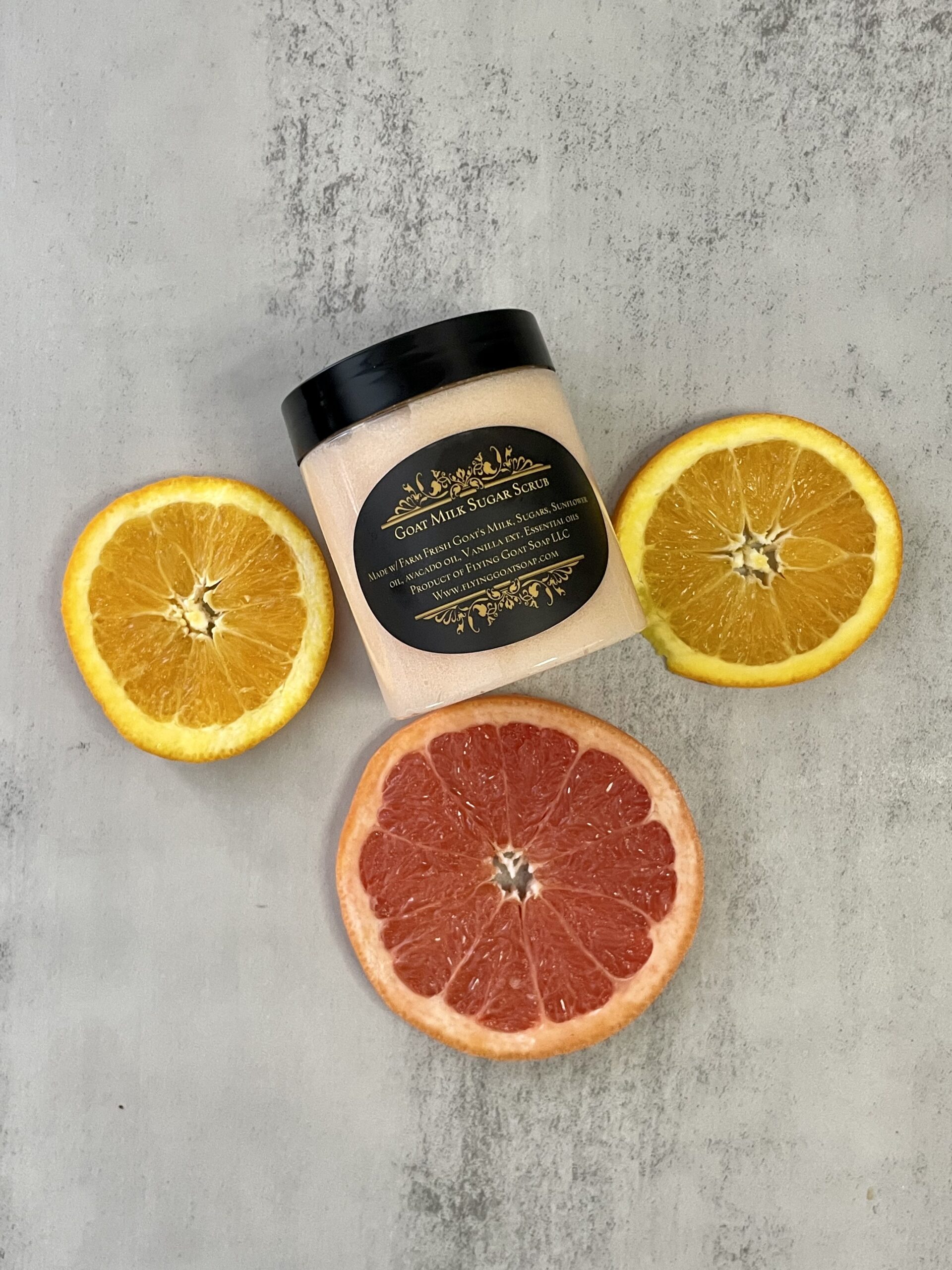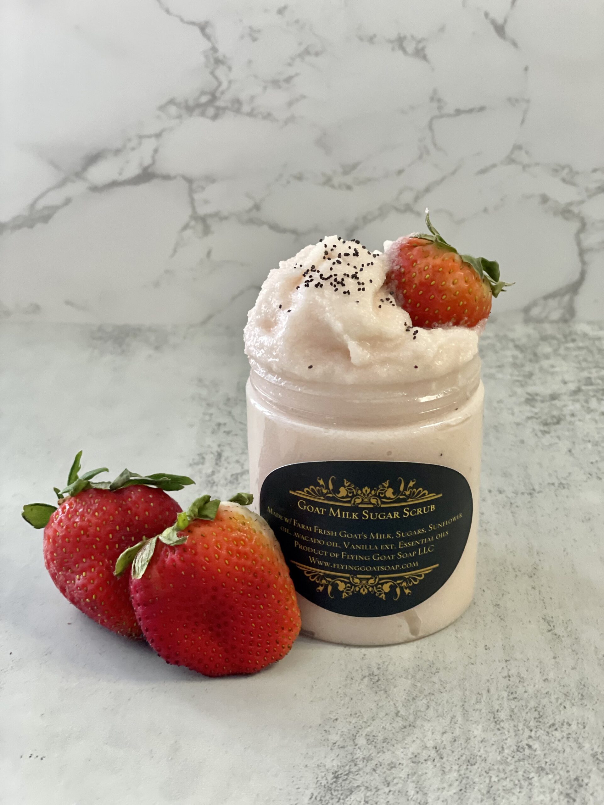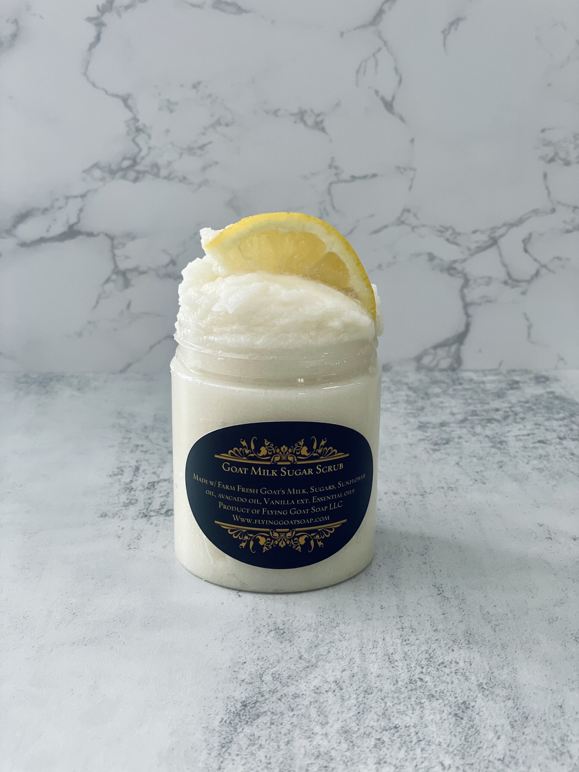 If so, our goat milk sugar scrubs are the perfect solution for you! Our scrubs are made with all organic ingredients, raw farm fresh goat milk, organic sugar, essential oils and avocado oil, sunflower oil, vitamin e, a & c. has alpha hydroxy botanical.25